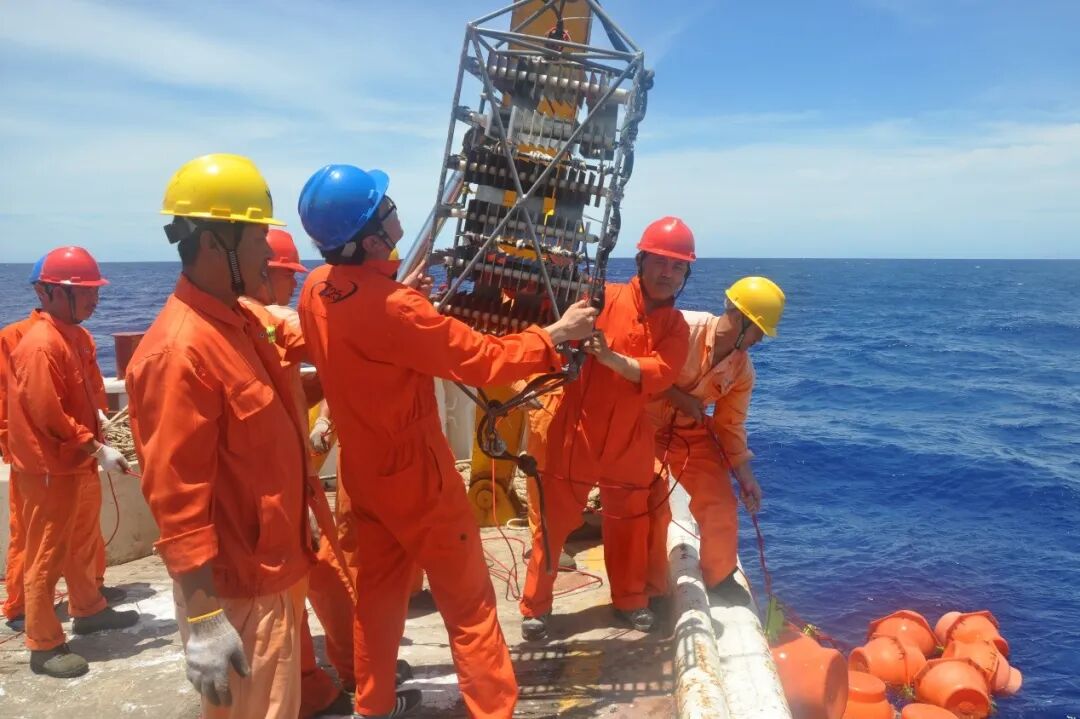 失敗成為最珍貴的養料。團隊對裝置進行全面升級,先后投放12套新型試驗裝置。從近海到遠海,海上作業的艱辛遠超想象:項目組成員張彭輝因嚴重暈船,連續三天僅靠一個蘋果維持,體力透支。試驗現場負責人侯健出于安全考慮,果斷決定臨時返航。得知這一決定時,張彭輝面色蒼白,聲音微弱卻堅定:“任務還沒完成,我還能堅持。”他拒絕了特殊照顧,始終守在崗位,直到整個航次任務圓滿完成。返航時,他的體重已驟降十幾斤。張彭輝的堅持,是整個團隊拼搏精神的縮影。其他試驗人員同樣在極端環境中堅守:在40℃高溫、毫無遮擋的甲板上,他們長時間作業,汗水浸透工裝,仍一絲不茍地記錄數據,試驗結束后,不少人暴露的皮膚出現大片脫皮;為抓住寶貴的窗口期,團隊曾在臺風間隙搶時間出海布放裝置,就在設備入水的瞬間,暴雨傾盆而下……