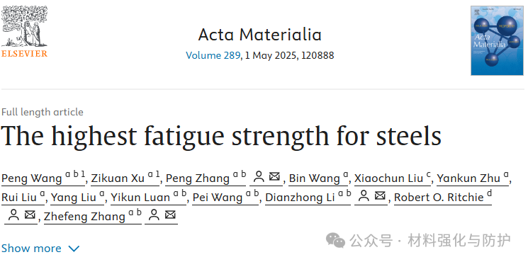 近日中科院金屬所的研究團隊聯合美國加州大學伯克利分校的Robert O. Ritchie教授,成功地在高碳鉻軸承鋼GCr15中實現了1130MPa的疲勞強度,刷新了鋼材的最高疲勞強度紀錄,目前這一突破性成果已在材料領域國際期刊《Acta Materialia》上在線發表,題為“The highest fatigue strength for steels”,在該論文中團隊闡述了如何在高碳鉻軸承鋼GCr15中,通過精確調控微觀結構與缺陷,突破疲勞強度極限,為高強鋼在極端服役條件下的應用提供了新思路。論文的通訊作者為中科院金屬所的張鵬研究員、李殿中院士、張哲峰研究員和美國加州大學伯克利分校Robert O. Ritchie教授。