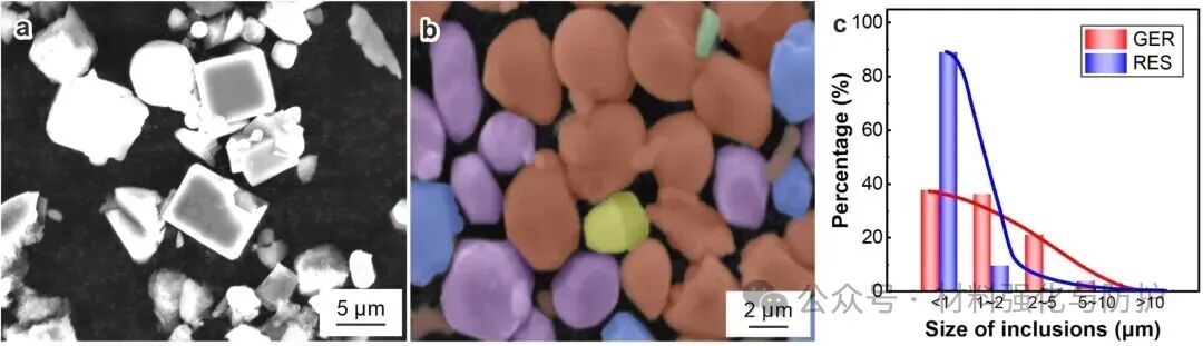該研究通過真空熔煉摻雜稀土元素,將摻雜稀土元素制備的鋼材命名為RER鋼,并以傳統的電渣重熔工藝制備的GER鋼作為對照組。試樣在850℃下奧氏體化30min后進行油淬火,隨后分別在不同溫度下回火2h后進行機械加工和拋光,用以表征夾雜物的形貌特征及其與基體的界面結合情況,并通過拉伸實驗和R=−1的拉伸-壓縮高周疲勞實驗評估材料的力學性能。