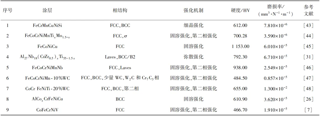 引文格式 汪震, 尚曉娟, 賈義旺, 聶華偉, 王玉璽, 王維, 任志鵬, 李勇, 方開濤. 高熵合金涂層微觀結構與服役性能的研究進展[J]. 材料保護, 2025, 58(7): 1-18. WANG Zhen, SHANG Xiaojuan, JIA Yiwang, NIE Huawei, WANG Yuxi, WANG Wei, REN Zhipeng, LI Yong, FANG Kaitao. Research Progress on the Microstructure and Service Performance of High-Entropy Alloy Coatings[J]. Materials Protection, 2025, 58(7): 1-18. DOI:10.16577/j.issn.1001-1560.2025.0110