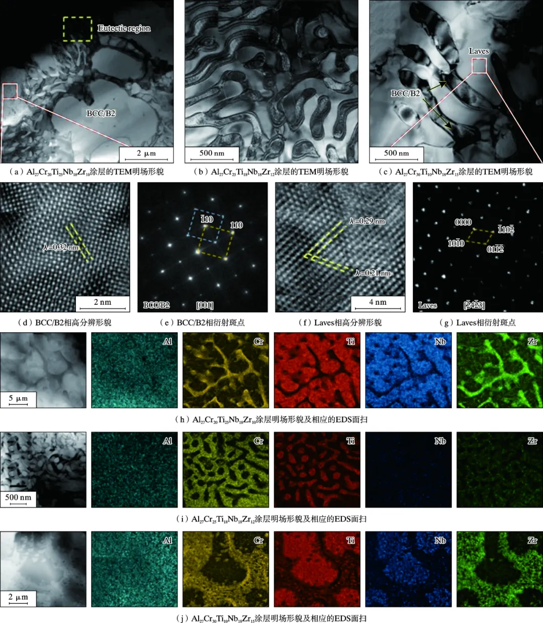 Al27Nb18(CrZr0.5)xTi55-1.5x共晶高熵合金涂層TEM形貌及EDS譜