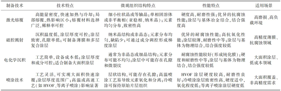 摘要 金屬材料的失效通常源于表面,通過表面強化技術可有效延長金屬構件的使用壽命并提升其工作效率。高熵合金涂層憑借其獨特的低維形態(如薄膜或納米顆粒)所引發的尺寸效應,與其多主元特性協同作用,展現出成分均勻、組織致密、結構穩定的顯著優勢。尺寸效應通過影響涂層的界面應力分布、表面能和缺陷演化,有效提升了涂層的綜合性能。本文系統綜述了高熵合金涂層的主要制備技術,深入探討了涂層的組織結構特征和服役性能表現,分析了成分、制備工藝、組織與性能之間的內在關聯機理;同時,闡述了數值模擬在涂層制備、微觀結構演化及性能表征中的應用價值,并展望了高熵合金涂層在未來研究和工程應用中的發展方向。旨在明確高熵合金涂層的制備路徑與性能演化規律,揭示其強化機制及成分、工藝與性能間的關聯,探討數值模擬在涂層設計與優化中的應用,為其工程化應用提供理論支持。