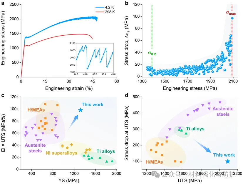 ① 室溫與液氦溫度下的優(yōu)異力學(xué)性能