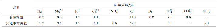 表2 合成海鹽和實地取樣海鹽的離子組分