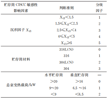 需要注意,不能認為具有相同CISCC敏感性分級數值的水平貯存筒和垂直貯存筒的腐蝕敏感性相同。此外,由于氯化物沉積和總衰變熱載荷是隨貯存時間而變化的,因此,應根據即時數據進行CISCC敏感性分級計算。對于給定的貯存筒,其CISCC敏感性分級等級越高, 表明其對 CISCC的敏感性越高。