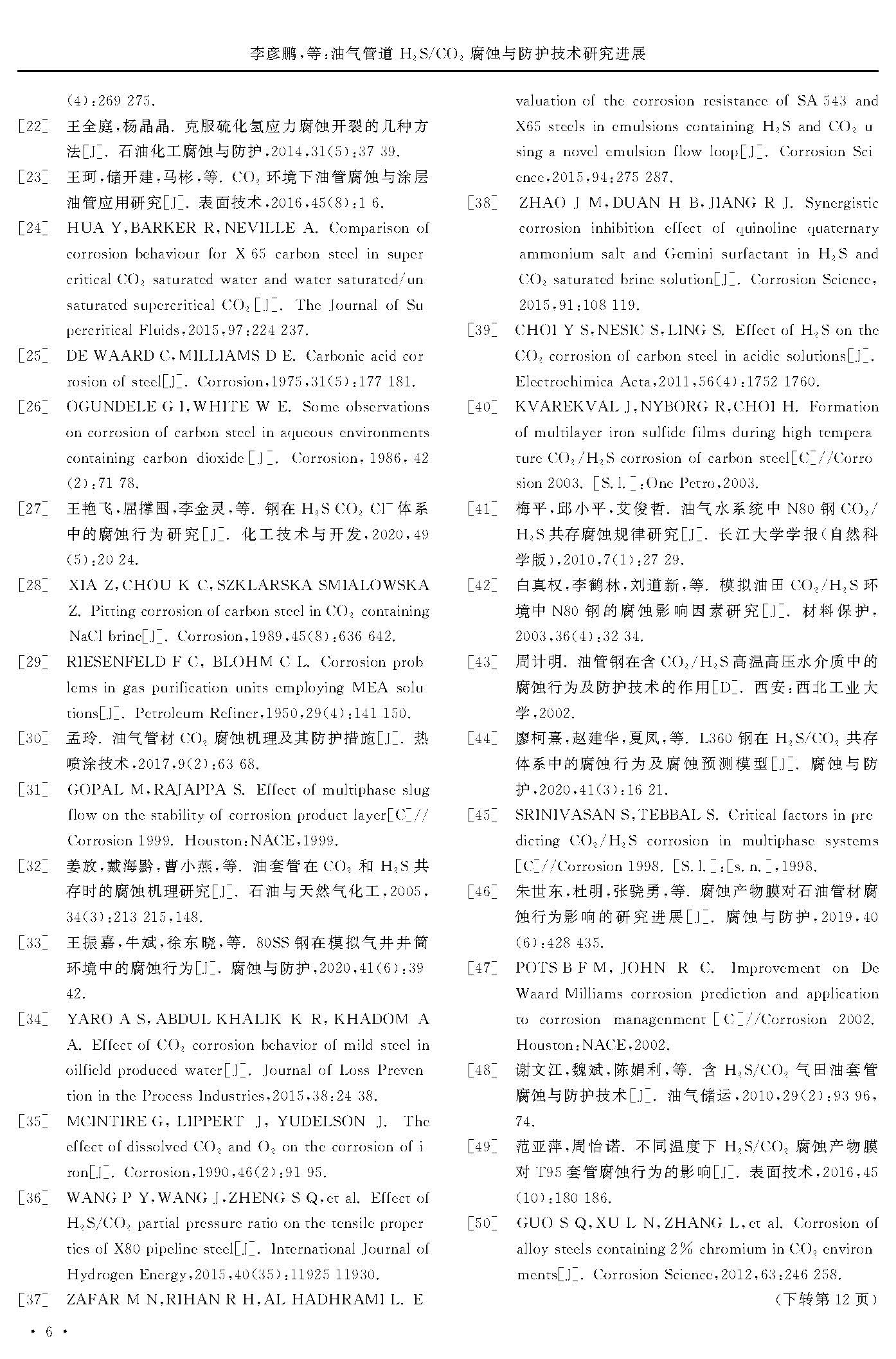 油氣管道H2S/CO2 腐蝕與防護技術研究進展