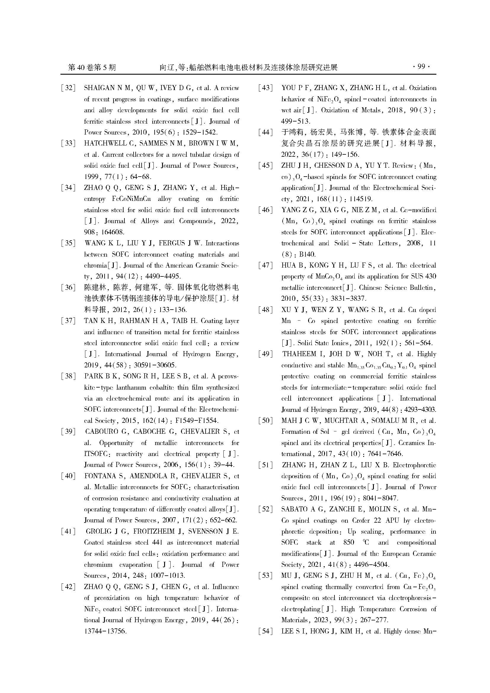 船舶燃料電池電極材料及連接體涂層研究進展