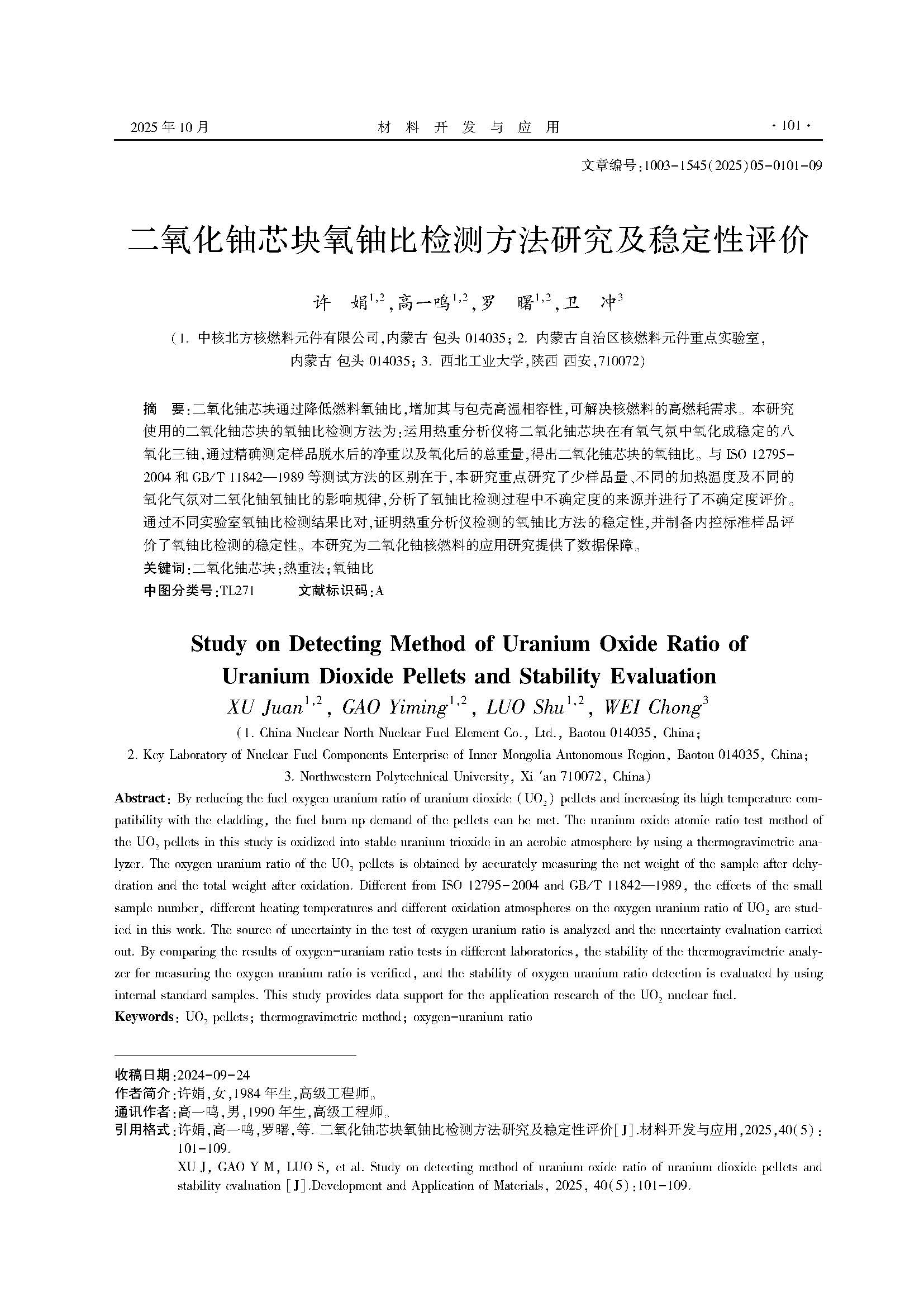 二氧化鈾芯塊氧鈾比檢測方法研究及穩定性評價涂層研究進展