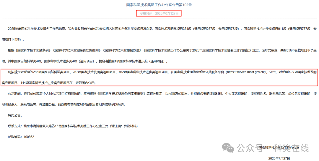 7月27日,科技部發布了2025年度國家科技獎受理結果,收到1534項,經形式審查,共有8項不合格,提名者撤回1項國家科技進步獎(通用項目)。實際受理1525項,受理的通用項目在國家科技管理信息系統公共服務平臺(https://service.most.gov.cn/jl)進行公示。