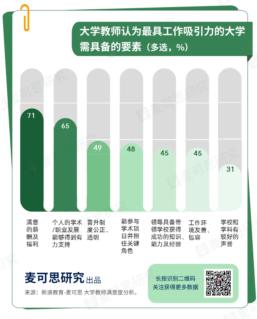 懷進鵬部長的表態直擊關鍵,而要真正實現這一目標,建立合理的薪酬體系是核心環節之一。正如研究指出: “有競爭力的工資水平有利于體現高校教師的勞動價值,提高高校教師職業的吸引力;而科學合理的工資結構則能夠保障教師個體的基本生活需要,激發教師工作的內在動機,提高教師在教學、科研與社會服務方面的工作績效”。胡詠梅等人在《理想與現實:我國高校教師工資水平與結構分析》一文中寫道。 在大眾眼中,大學教師是個體面的職業,認為該群體的收入應該不低。然而實際情況可能與普遍認知存在一定差距。 麥可思2022年曾開展過一項教師滿意度的研究。受訪教師被問及最具工作吸引力的高校應具備哪些要素,滿意的薪酬及福利是大學教師認為最重要因素,選擇此項的教師比例為71%。 當受訪教師被明確問及對自己當前的收入是否滿意時,超三成(32%)表示不滿意。 具體來看,受訪教師中,年收入在10萬元以內的比例為54%,10萬~14萬的比例為24%,14萬~18萬的比例為11%,18萬以上的比例為11%。其中,青年教師薪資在10萬元以下比例較高,為66%;46歲及以上教師在18萬以上占比較高,為31%。 不過需說明的是,大學教師的收入,受到地域、院校層次、教師職稱、院系和專業等多重因素影響,存在不小的差異,甚至可能是巨大的差異。 北京工業大學人文社會科學學院和社科文獻出版社聯合發布的《高校教師收入分配與激勵機制改革研究》一書提到,即使是同一職稱級別的高校教師,如果比較收入最高的10%群體和收入最低的10%群體,高校教授之間的收入差距達5.9倍,副教授為4.5倍,講師之間的收入差距更是達到了25倍。 面對教師薪資與社會期待的落差,各地政府和高校正通過政策創新積極回應訴求,積極探索薪酬改革的可行路徑。 據浙江省政府網站去年3月底的消息,針對網友“浙江省高校教師薪資水平與浙江省在全國經濟社會發展的總體水平不匹配”的留言,浙江省教育廳答復稱,將在適當調節高校工資收入的基礎上,給予高校更大的收入分配自主權,進一步提高教職工的職業幸福感,激發高等教育辦學活力,促進高等教育事業的發展。 北京市人力資源社會保障局印發《貫徹落實黨的二十屆三中全會和市委十三屆五次全會精神改革任務清單》明確,要開展高校科研院所薪酬制度改革試點、完善最低工資標準和工資指導線調整及發布機制等改革舉措,最大限度促進勞動者工資收入合理增長。 四川省日前發布的《教育強省建設規劃綱要(2025—2035年)》中明確,提高教師待遇和地位……推進高校薪酬制度改革。 …… 近年來越來越多的高校已在進行教師薪酬改革,一批高校教師薪資獲得提升。 安徽一師范學院今年初對外發布的消息稱,該校提高教師的薪資水平,落實績效工資分配制度,2024年,在前一年的基礎上合理提高績效工資基本盤,提升教師的幸福感、獲得感。 某醫學院曾發文提到,根據學校新的薪酬績效改革方案,2023年5月教職工薪酬實現了人均5000元/月(6萬元/年)一次性調增,足額每月發放至教職工手中,本次調增后該校來校3年及以上在校教職工月平均薪酬達16880元。 東北某理工學院曾透露該校新一輪教職工薪酬福利調整方案于2022年實施,該校表示,新增投入1500萬元用于教職工工資和福利調整,進一步完善薪酬體系,優化工資結構。 …… 高校薪酬改革是一項復雜且系統的工程。 《教育部等六部門關于加強新時代高校教師隊伍建設改革的指導意見》中曾明確,在薪酬制度改革上,高校應落實以增加知識價值為導向的收入分配政策,探索建立符合高校特點的薪酬制度;探索建立高校薪酬水平調查比較制度,健全完善高校工資水平決定和正常增長機制,在保障基本工資水平正常調整的基礎上,合理確定高校教師工資收入水平。高校要結合實際健全內部收入分配機制,完善績效考核辦法,向扎根教學一線、業績突出的教師傾斜。 在政策推進與高校實踐的基礎上,不少研究也進一步聚焦于改革過程中面臨的實際問題與優化路徑。例如,對于高校教師薪酬改革,胡詠梅等人基于研究發現,提出3點對策建議: ? 關注高校教師尤其是“雙一流”建設高校專任教師、東部地區高校教師的期望工資水平,適度提高高校教師的工資水平,建立適應各地經濟發展水平的工資增長機制;加大對高校教師隊伍建設的專項投入,助力高校建立人員經費支出的長效增長機制。 ? 優化高校教師工資結構,適當提高教師的基本工資占比;鼓勵經濟發達省份制定與當地經濟發展水平相匹配的基本工資標準,以增強高校教師工資的保障性功能。 ? “雙一流”建設高校一方面支持一流學科建設院系創新薪酬分配制度,為高層次人才設定具有國際競爭力的薪資水平;另一方面關注青年教師的生存發展狀況,優化高校青年教師工作環境,為青年教師提供靈活多樣的福利項目。 高校教師薪酬改革事關教育強國建設的根基,既需要政策層面的持續推動,也更離不開高校自身的創新探索。當前,從中央到地方,從制度設計到院校實踐,多項改革正在穩步推進。唯有進一步優化收入分配結構、強化薪酬激勵效應、關注青年教師成長,才能真正提升教師的職業獲得感和尊嚴感,吸引并留住優秀人才投身教育事業,為高質量發展提供堅實人才支撐。