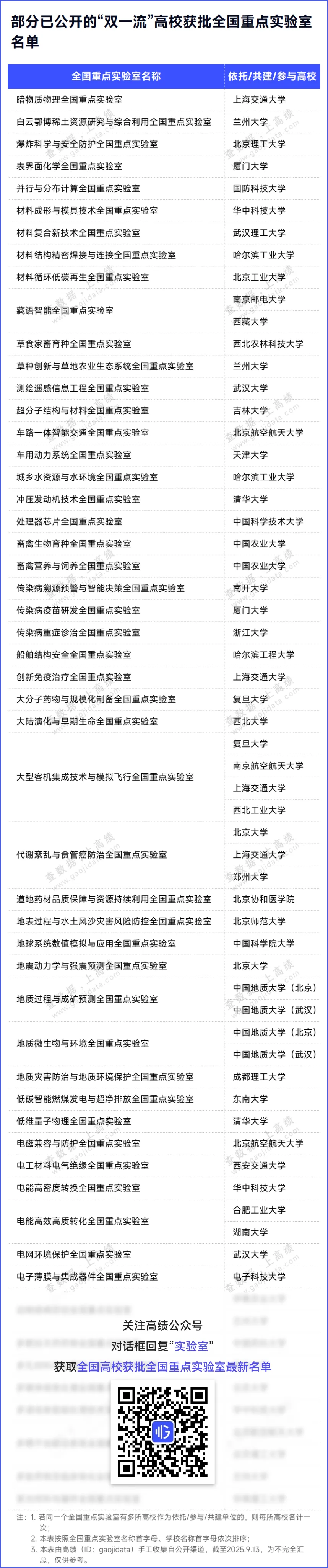 截至2025年9月13日,高績(ID:gaojidata)據(jù)公開信息不完全統(tǒng)計,已有超500家全國重點實驗室獲批或重組完成。