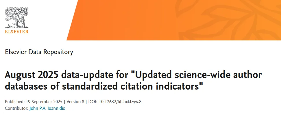 當地時間9月19日,斯坦福大學(Stanford University)和國際權威學術出版社愛思唯爾(Elsevier)共同發布2025年全球前2%頂尖科學家榜單(World's Top 2% Scientists)。