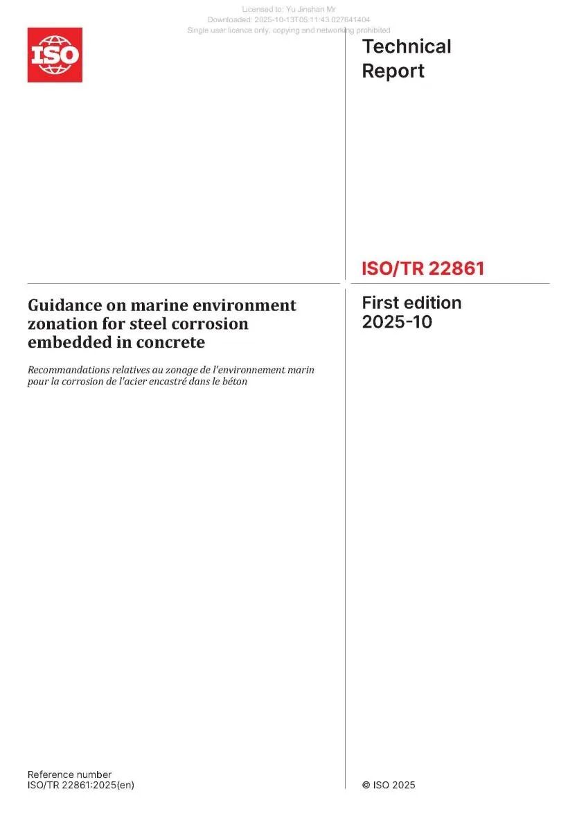 近日,由中國牽頭制定的ISO/TR 22861:2025《海洋環境鋼筋混凝土結構暴露區域劃分指南》正式批準發布。