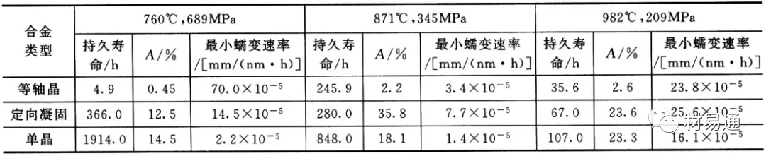 等軸晶、定向凝固及單晶 M-M200的蠕變和持久性能