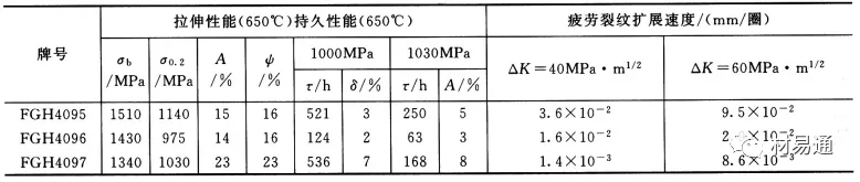 中國研制的三種渦輪盤粉末冶金高溫合金性能