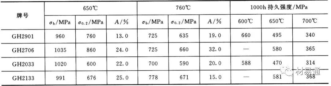 常見鐵基變形高溫合 金的牌號、化學成分及使用溫度
