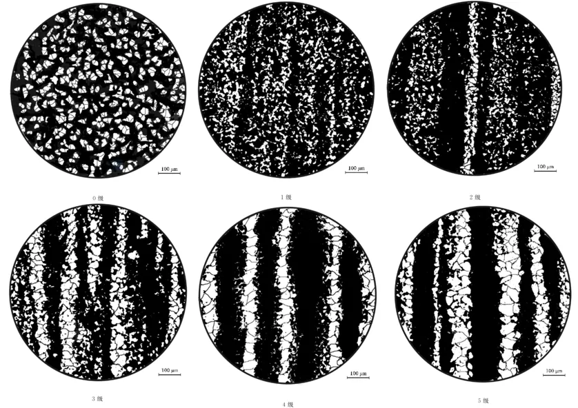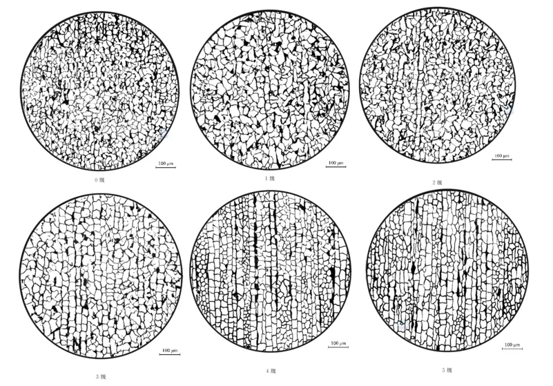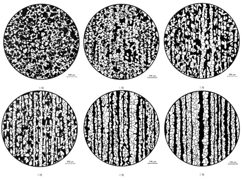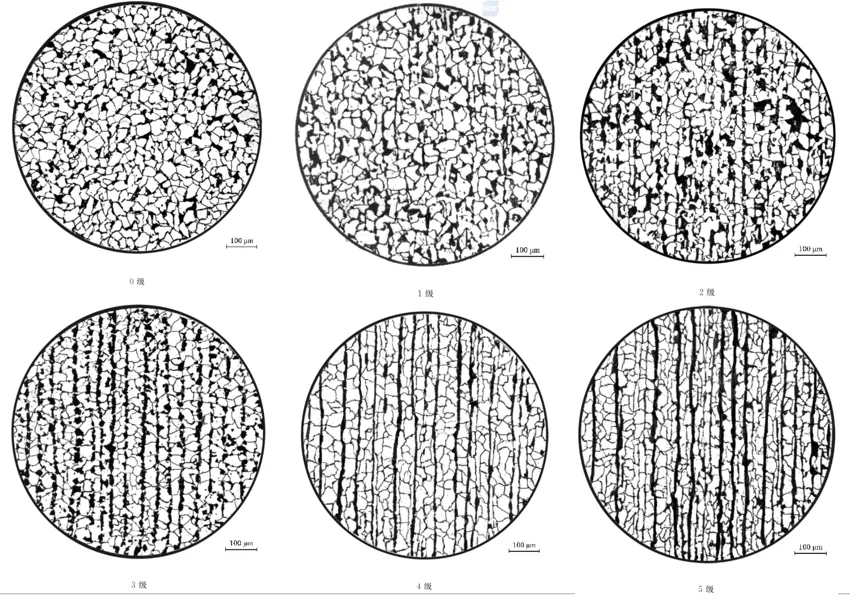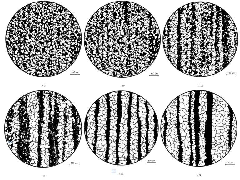 A系列:含碳量小于0.1%鋼的帶狀組織評級 B系列:含碳量0.1%~0.19%鋼的帶狀組織評級 C系列:含碳量0.2%~0.29%鋼的帶狀組織評級 D系列:含碳量0.3%~0.39%鋼的帶狀組織評級 E系列:含碳量0.4%~0.6%鋼的帶狀組織評級
