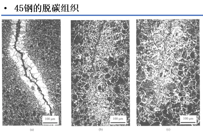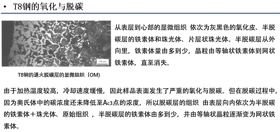 1)鋼在A1~A3或在A1~Acm區域內加熱時,強脫碳形成柱狀晶粒;