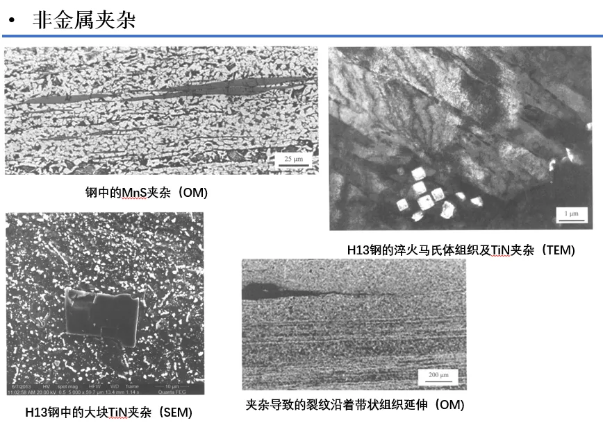 鋼中的非金屬夾雜一般簡稱為夾雜。夾雜有簡單氧化物、復雜氧化物、硅酸鹽及硅酸鹽玻璃。例如FeO,MnO,Cr203,Al203等。