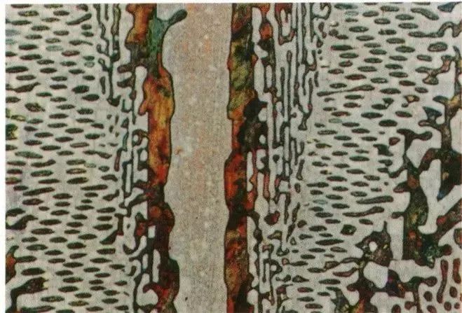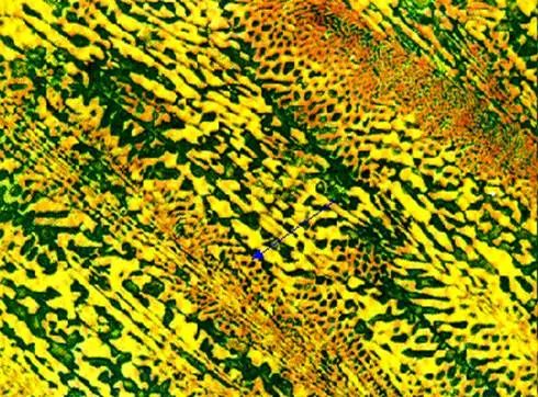 鐵素體魏氏組織:在亞共析鋼中,當奧氏體以快冷速度通過Ar3~Ar1溫度區時,鐵素體片插向奧氏體晶粒內部,這些分布在原奧氏體晶粒內部呈片狀先共析鐵素體被稱為鐵素體魏氏組織;