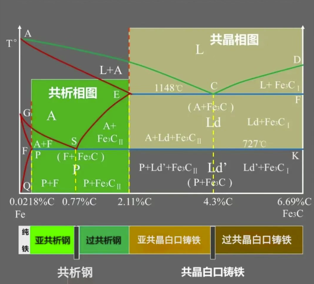 基于Fe-Fe3C相圖的Fe-C合金分類: