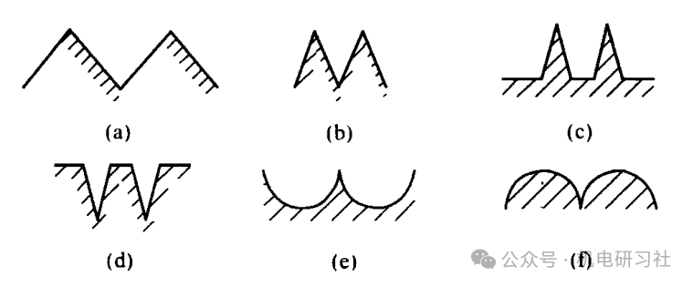 磨損的過程 機械零件的使用壽命在很大程度上取決于零件的耐磨性。在摩擦副的材料、熱處理情況和潤滑條件條件確定的情況下,零件的表面質(zhì)量就起著決定性的作用。 零件的磨損過程通常分為三個階段。 I :初期磨損階段,也稱為磨合階段。當(dāng)兩個零件表面剛開始接觸時,只是表面粗糙的凸峰相互接觸,實際接觸面積很小,單位面積壓力很大,不能形成潤滑油膜,接觸處形成局部干摩擦,其應(yīng)力可能超過金屬的屈服極限和強度極限。隨著摩擦副的相對運動,接觸部分金屬被撕裂、破碎或切斷,凸峰很快被碾平,磨損速度較快。 II :正常磨損階段。隨著磨合過程的進(jìn)行,表面粗糙度值逐漸減小,實際接觸面積增大,單位面積壓力減小,摩擦表面之間具有良好的潤滑條件,磨損將以緩慢速度進(jìn)行。 III :急劇磨損階段。經(jīng)過相當(dāng)長一段時間后,隨著磨損的進(jìn)行,表面粗糙度值繼續(xù)減小,潤滑油被擠出接觸面,致使接觸面間形成了半干摩擦,甚至干摩擦,摩擦阻力增大,加劇了表面磨損。同時,由于實際接觸面積進(jìn)一步增大,促使接觸表面間分子吸附力增大,從而容易出現(xiàn)表面分子粘合的表面咬焊現(xiàn)象,隨著運動的進(jìn)行,局部咬焊的表面將被撕裂。有時還會由于摩擦產(chǎn)生的大量熱量,使接觸表面出現(xiàn)高溫,改變金屬組織,降低表面硬度,甚至還能使局部接觸表面熔焊在一起,導(dǎo)致磨損劇烈增加。 表面粗糙度對耐磨性的影響 零件初期磨損量與表面粗糙度值有著密切的關(guān)系。在一定工作條件下,都存在一個初期磨損量最小的最佳表面粗糙度值。一般工作情況,表面粗糙度Ra值為0.4μm~0.8μm時,初期磨損量最小。 表面輪廓對耐磨性的影響 表面輪廓形狀對零件的耐磨性也有顯著的影響。在相同粗糙度下,以下6種由于表面輪廓形狀的差異,使零件間的實際接觸面積和潤滑油的存留情況變化很大,零件的耐磨性相差甚遠(yuǎn)。 (b)、(d)、(f)輪廓形狀表面將比同組的(a)、(c)、(e)輪廓形狀表面耐磨。 表面紋理方向?qū)δ湍バ缘挠绊?/span>