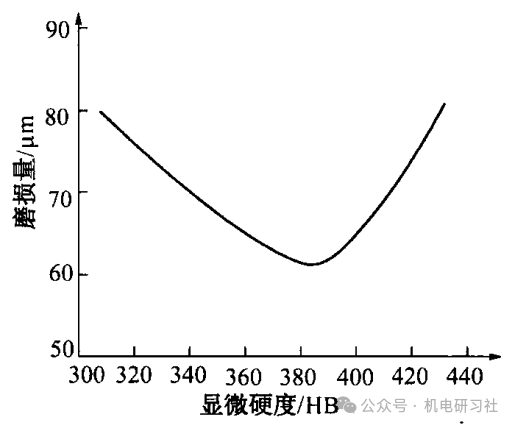 下圖為T7A碳素工具鋼,當(dāng)其表面顯微硬度提高到380HB時,其耐磨性達(dá)到最佳值,如顯微硬度進(jìn)一步提高,其耐磨性反而會下降。