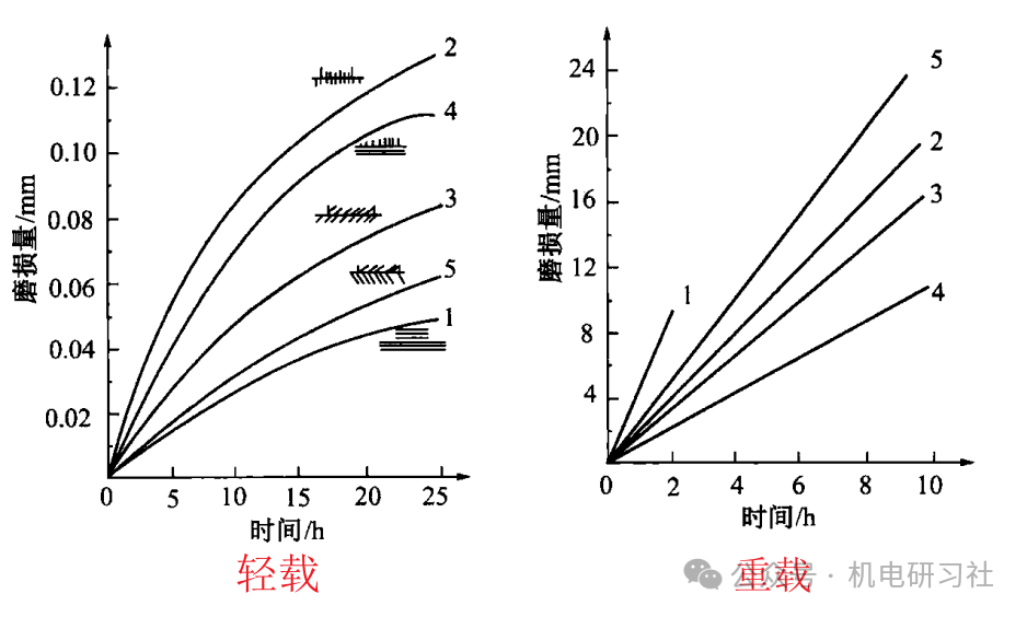 零件表面的加工紋理方向與相對運動方向的相互關(guān)系,對磨損量也有很大影響。