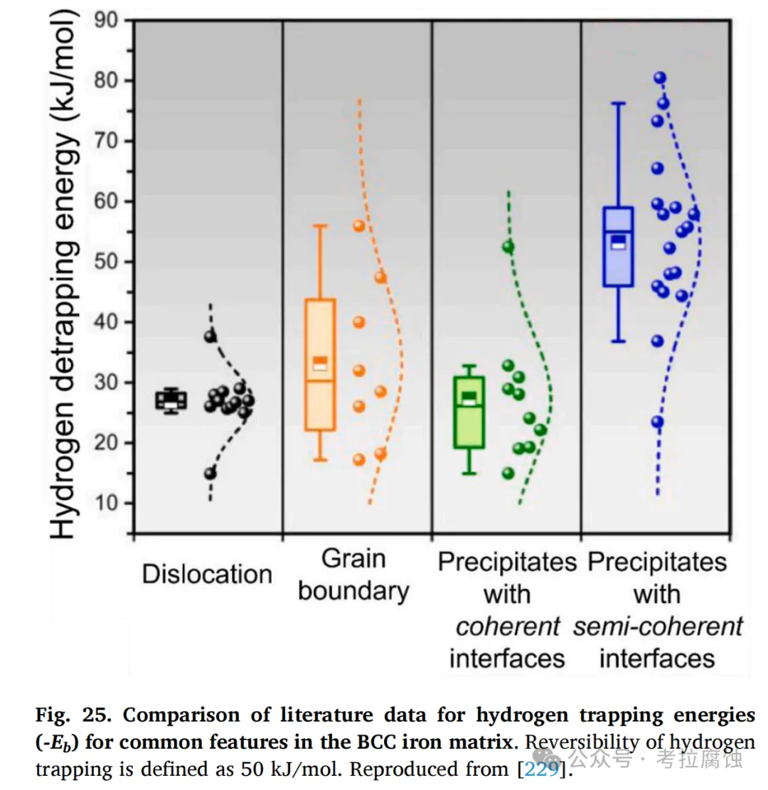 - 弱/無陷阱效應:Si、Cr、Mn、Co、Mo的結合能接近0 kJ/mol,對氫無顯著捕獲能力(第一性原理計算)。