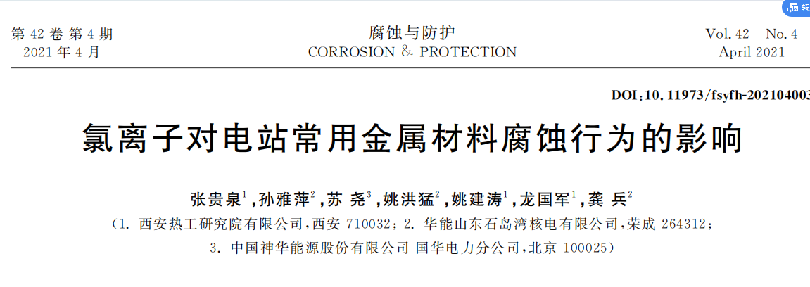 "介紹了氯離子對電站常用碳鋼、低合金鋼和不銹鋼在電站停用期間腐..."